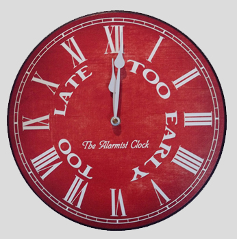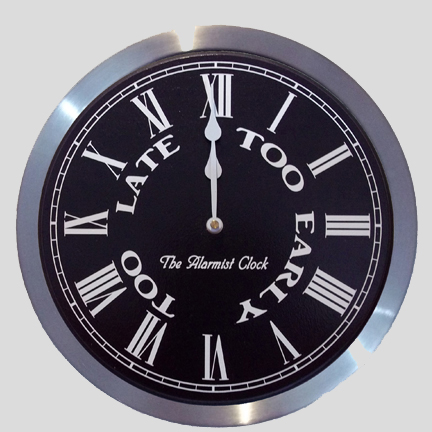 Well maybe not yet. But no matter where it finds a home.... kitchen, living room, den, bedroom, ... The Alarmist Clock adds charm, fun, a bit of elegance, and a definite conversation piece. It's witty. If Dorothy Parker or Oscar Wilde owned a wall clock this would be it.